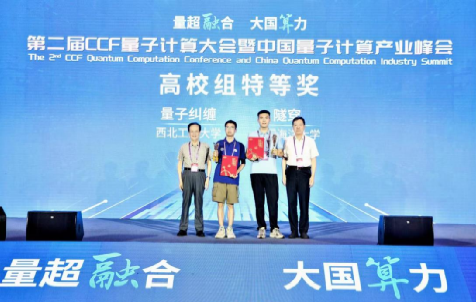 8月19日-20日,由中国计算机学会CCF主办的第二届CCF量子计算大会暨中国量子计算产业峰会在安徽省合肥市召开,第二届CCF“司南杯”量子计算编程挑战赛颁奖典礼同期举行。beat365中文官方网站张伟伟副教授指导的本科生参赛队伍“量子纠缠”队获特等奖,现场由中国量子光学和量子信息开创者、奠基人郭光灿院士颁奖。